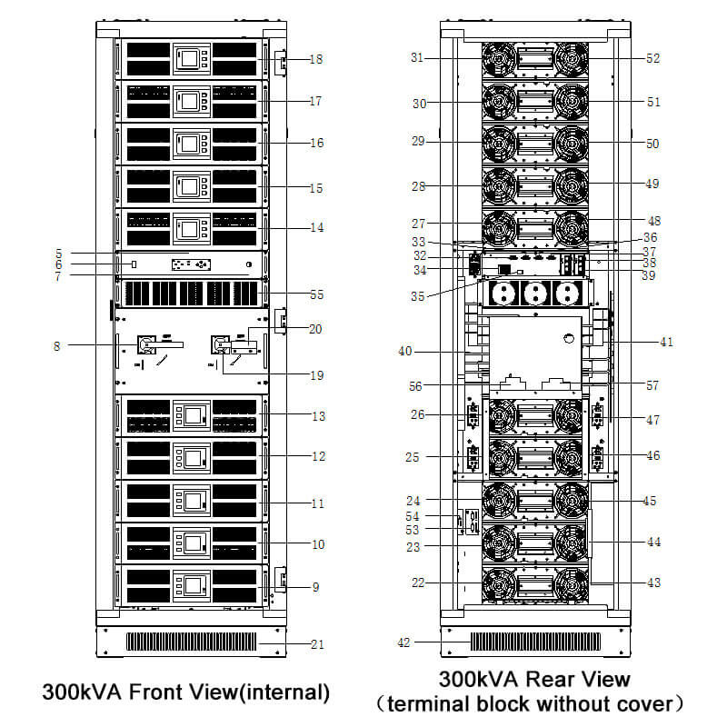 | Battery Voltage | ±192V±204V±216V±228V±240V DC; (32 pcs;34 pcs;36 pcs;38 pcs;40 pcs optional) | |||