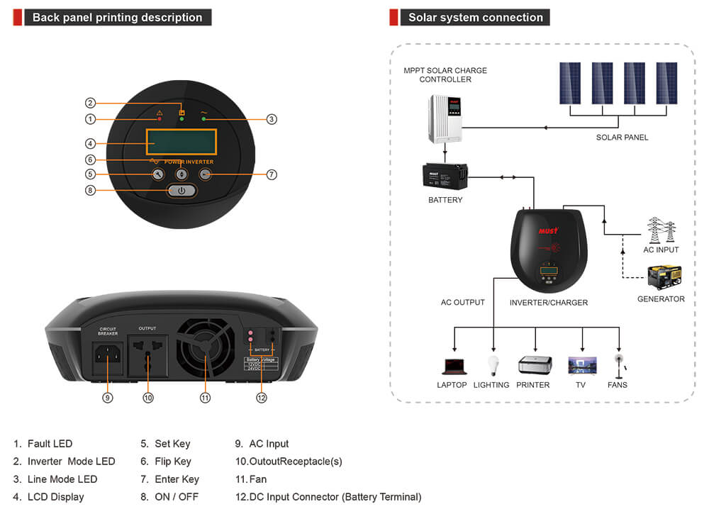 EP1100 Pro 1200VA/2400VA is a modified sine wave inverter applied to TV, stereos, laptops, and desktop computers and other home appliances. It will automatically switch to inverter and provide power when AC is interrupted unexpectedly.It's perfect for the user who need a simple and economical inverter,with user-friendly installnation and setting.