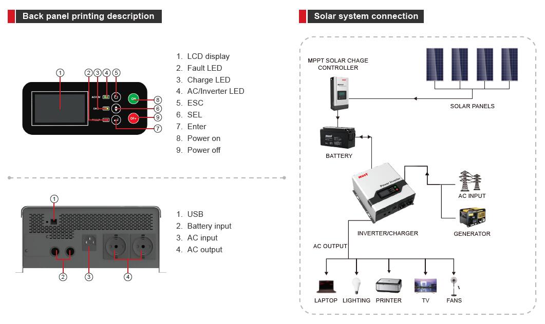 EP2000 PRO series inverter is a cost effective, intelligent with UPS function. The comprehensive LCD offers user-configurable and easy-accessible button adjustment such as battery charge current, battery charge voltage, frequency, buzzer etc. It's perfect for the user who need a simple and economical inverter,with user-friendly installnation and setting.Tower and rack design available for different choices.