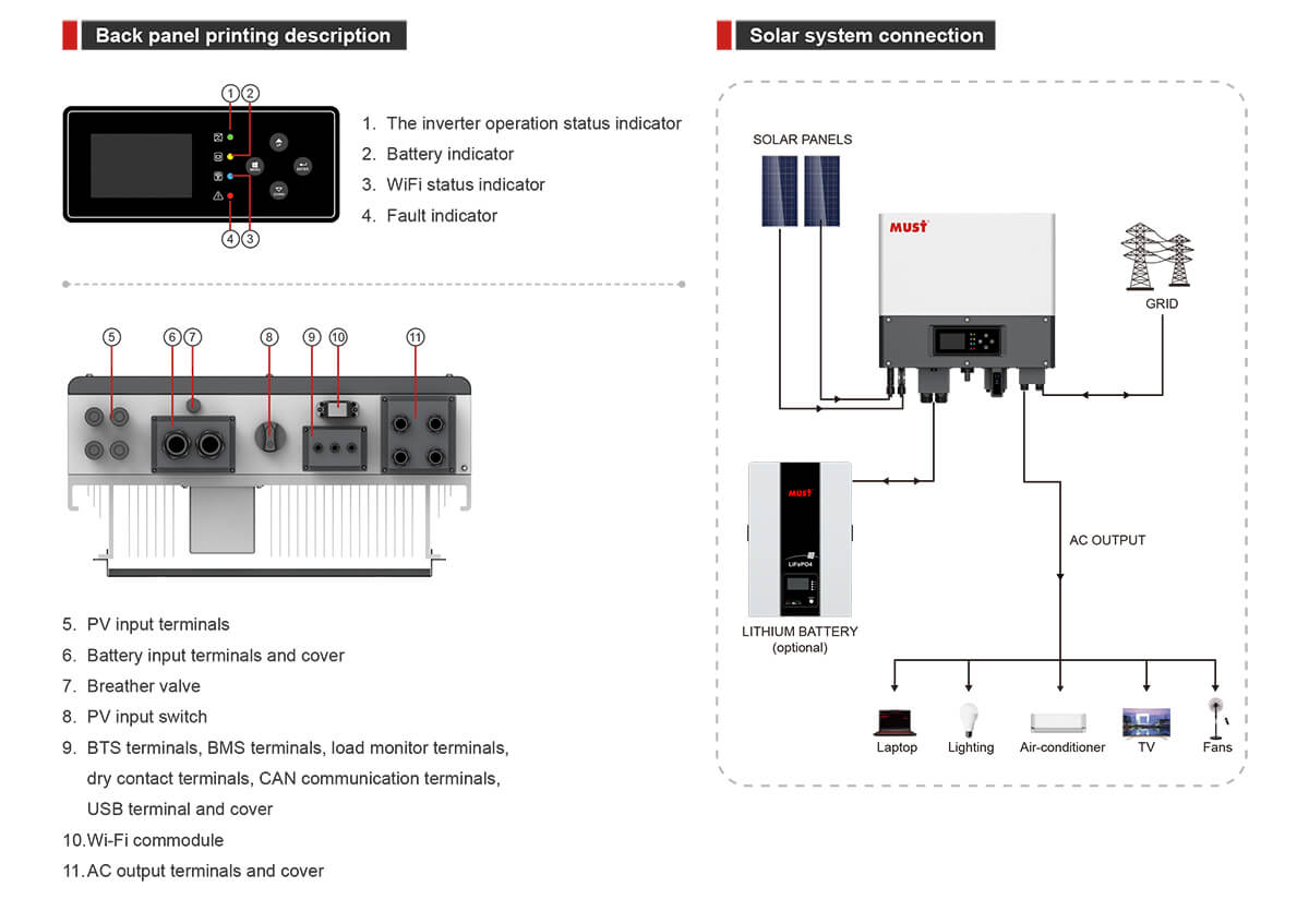 PH1100 PRO Hybrid Solar Inverter is an excellent product that provides a sustainable and reliable solution for your energy needs. The product offers multiple operation modes, including Grid-tie and off-grid with storage backup, making it suitable for all types of energy requirements. Additionally, the product is rated IP65, which means it is both dust-proof and water-proof, ensuring a long-lasting and durable system.