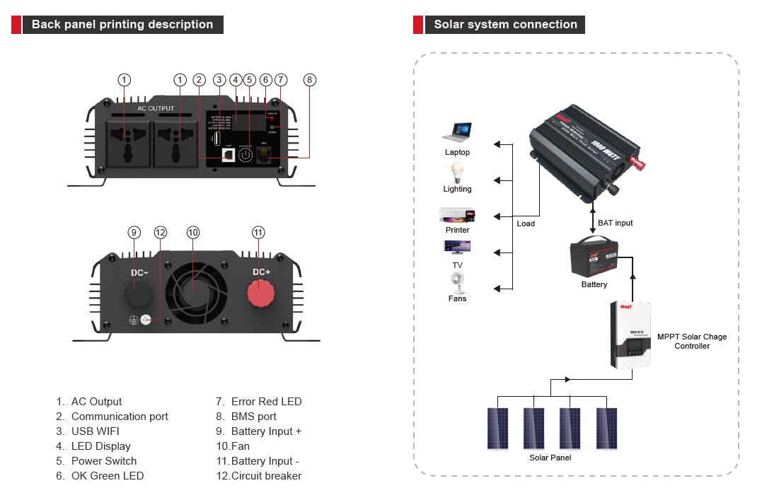 PI15 series is a pure sine wave inverter, high frequency machine solution, the product is small size, the solution is reliable and stable, the main function is to invert the DC 12VDC battery or 24VDC battery to AC 230VAC or AC 115VAC output, mainly used for emergency use Electricity, car inverter, outdoor electricity and other occasions.
