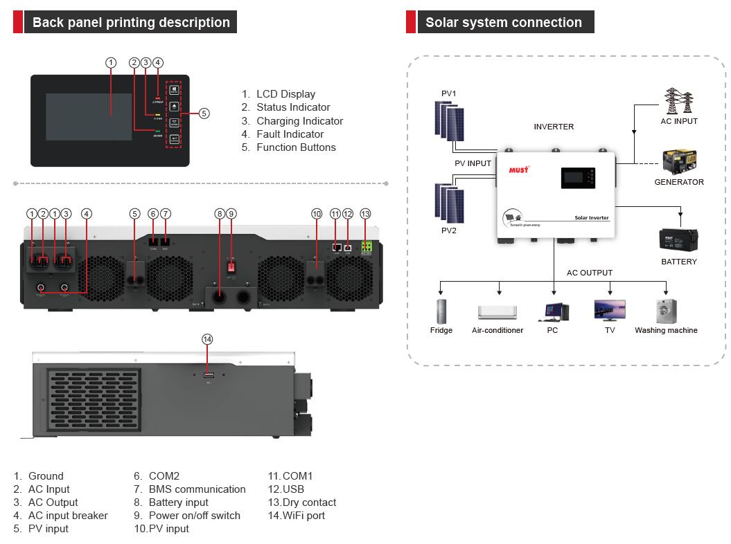 This is a multi-function inverter/charger, combining functions of inverter, solar charger and battery charger to offer uninterruptible power support with portable size. Its comprehensive LCD display offers user-configurable and easy-accessible button operation such as battery charging current, AC/solar charger priority, and acceptable input voltage based on different applications.