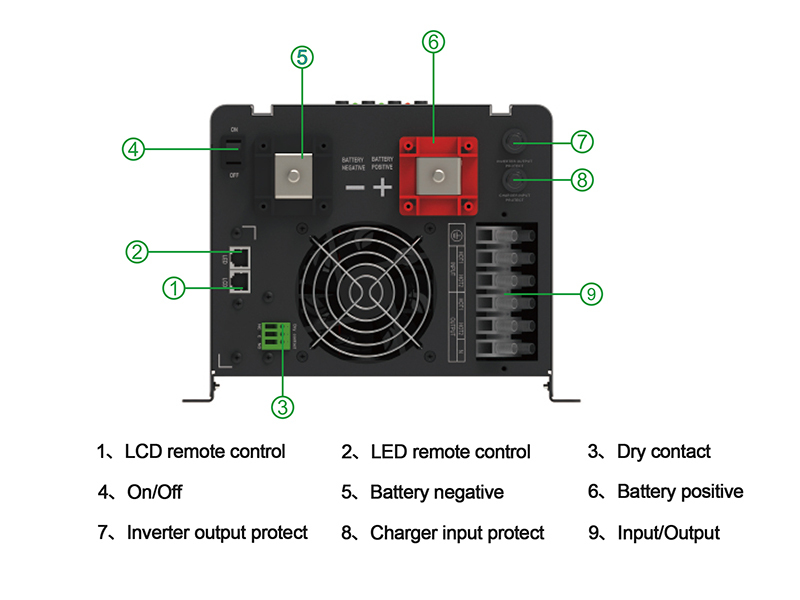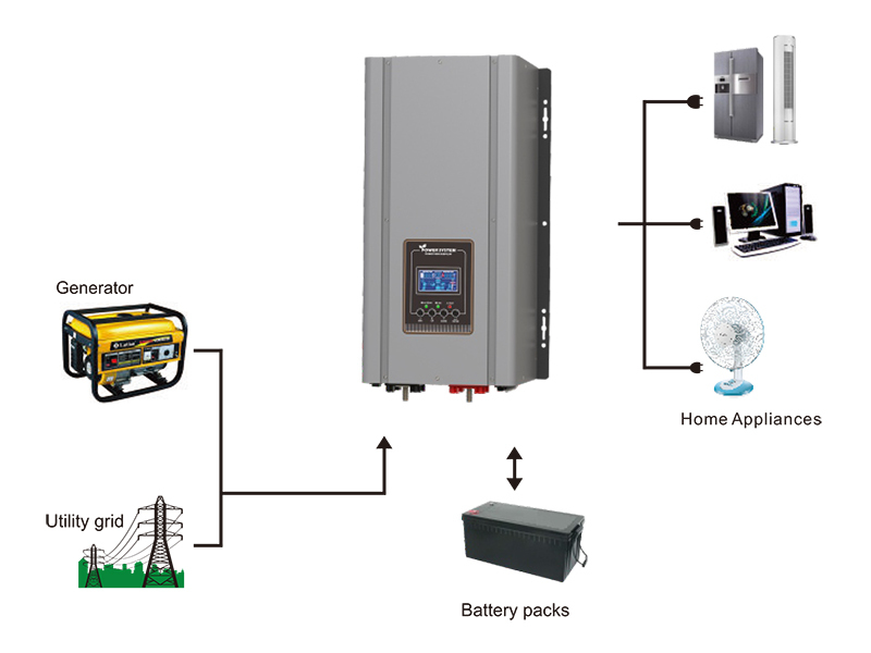 | Specification setting | By LCD or Position Machine:Charging Current Battery Type, Input Voltage, Output Frequency. Wide and Narrow range of AC input voltage, Power saver Model, AC Priority or Battery Priority: | ||||||||